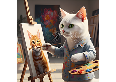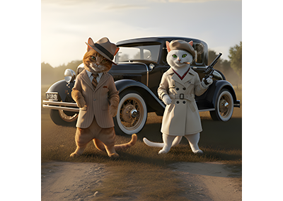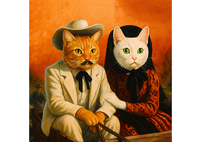 This collection features art inspired by the YouTube series “Tails of Nick and Nora.” Nick, a charming red tabby cat with warm amber eyes, and Nora, an elegant all-white cat with bright green eyes, star together in a whimsical world of imagination. Each piece captures their playful adventures — from cinematic parodies and humorous “on the job” moments to creative scenes that blend storytelling with fine art. Whether heroic, funny, or heartwarming, every artwork brings these two feline friends to life in vivid, photorealistic detail.