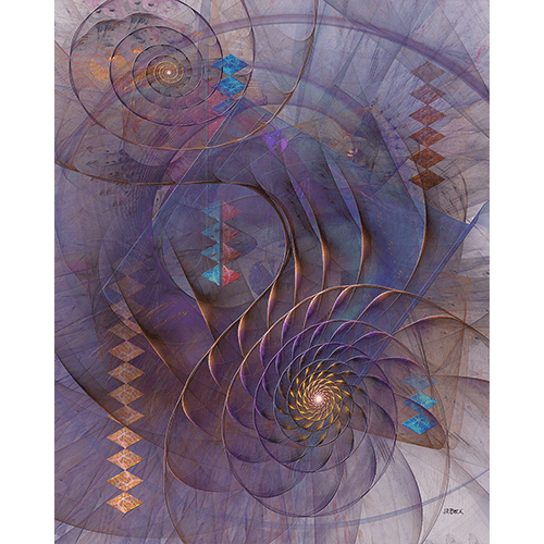This abstract art was created in 2010. In Meandering, the spiral and the diamond and triangle shapes work together giving a organic feel to the piece.